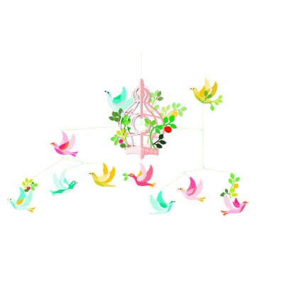 The Djeco Mobiles collection, a poetic and aerial encounter between two worlds, design and illustration for children. A subtle game of balance between dream and reality.